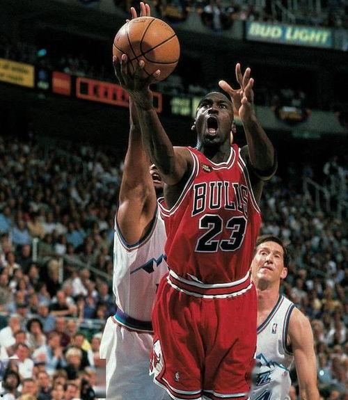 1996年NBA总决赛第六场:乔丹在这场比赛中独得38分,带领芝加哥公牛队以111-87战胜西雅图超音速,从而夺得了该赛季的总冠军。